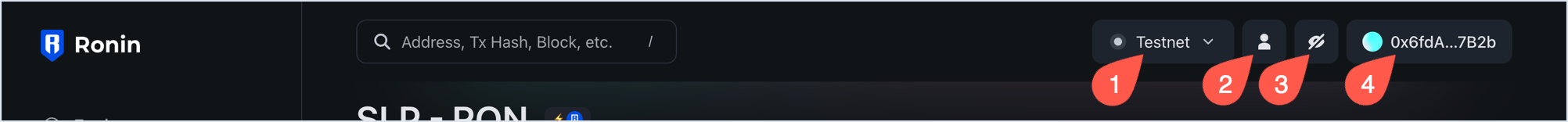 - User icon: this opens the page for your connected address in Ronin Block Explorer.